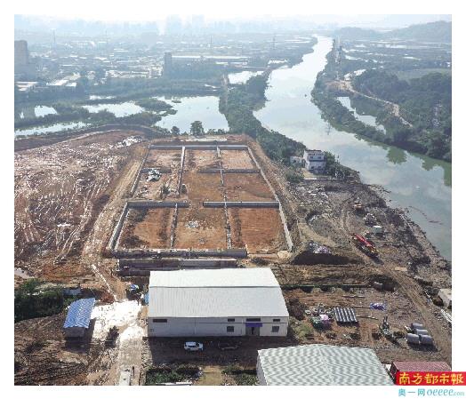 吉隆河初雨生态调蓄塘及一体化中水回收设施建设工程施工现场。