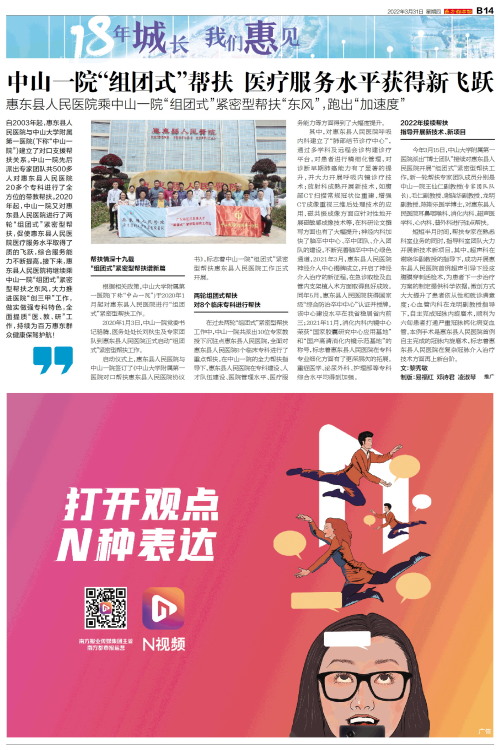 根据相关政策,中山大学附属第一医院(下称“中山一院”)于2020年1月起对惠东县人民医院进行“组团式”紧密型帮扶工作。