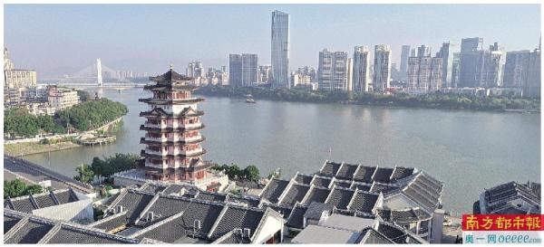 从惠州合江楼远眺东江和江北CBD。 南都记者 田飞 摄