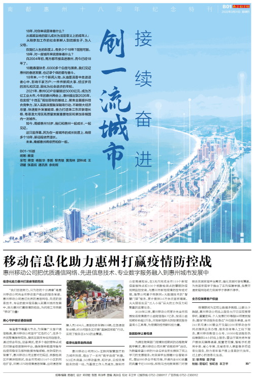 信息化助力惠州打赢疫情防控战 “我们百倍努力,只为您的十分满意”是惠州移动公司向全市移动客户做出的服务承诺。惠州移动公司通过优质的通信网络、先进的信息技术、专业的数字服务融入到惠州城市发展中,助
