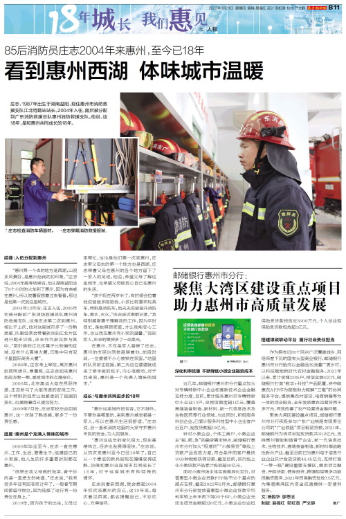 庄志,1987年出生于湖南益阳,现任惠州市消防救援支队江北特勤站站长。2004年入伍,随后被分配到广东消防救援总队惠州消防救援支队。他说,这18年,是和惠州共同成长的18年。结缘:入伍分配到惠州