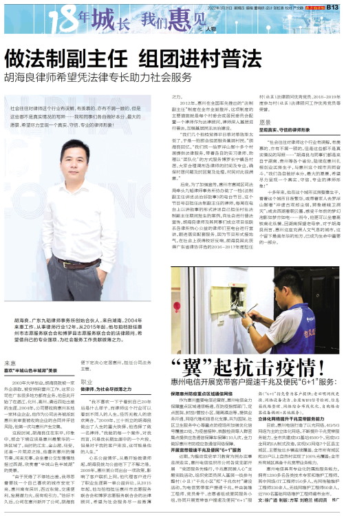 社会往往对律师这个行业有误解,有羡慕的、亦有不屑一顾的,但是这些都不是真实情况的写照……我和同事们各自做好本分,最大的愿景,希望尽力呈现一个真实、守信、专业的律师形象! 胡海良,广东九韬律师事务