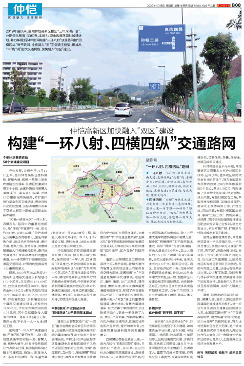 2019年底以来,惠州仲恺高新区推出“三年滚动计划”,分期分批筹措130亿元,实施74项市政道路园林城建计划,并力争用3至4年时间构建“一环八射”快速路网和“四横四纵”骨干路网,全面融入“丰”字交