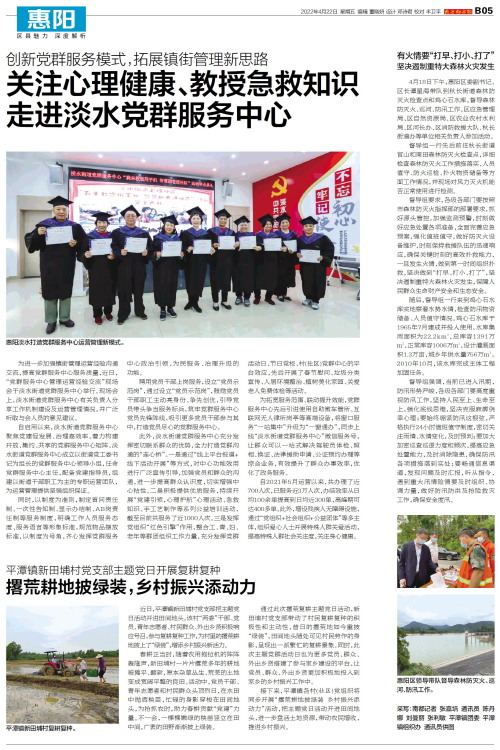 4月18日下午,惠阳区委副书记、区长谭星海带队到秋长街道森林防灭火检查点和鸡心石水库,督导森林防灭火、巡河、防汛工作。区应急管理局、区自然资源局、区农业农村水利局、区河长办、区消防救援大队、秋长街