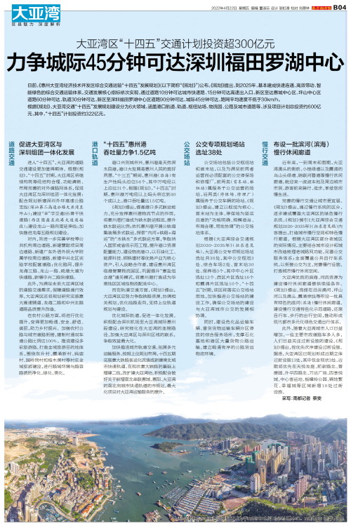 日前,《惠州大亚湾经济技术开发区综合交通运输“十四五”发展规划》(以下简称“《规划》”)公布。《规划》提出,到2025年,基本建成快速连通、高效带动、智能绿色的综合交通运输体系。交通发展核心指标依