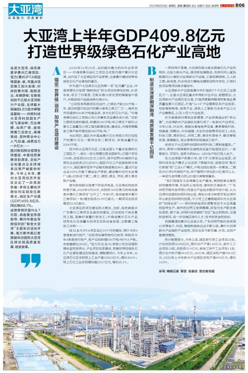 大亚湾上半年GDP409.8亿元 打造世界级绿色石化产业高地