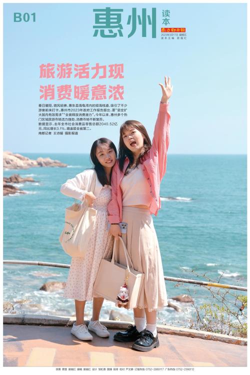 春日暖阳,微风轻拂,惠东县海龟湾内的观海栈道,吸引了不少游客前来打卡。惠州市2023年政府工作报告提出,要“坚定扩大国内有效需求”“全面释放消费潜力”。今年以来,惠州多个热门区域旅游市场活力强劲,