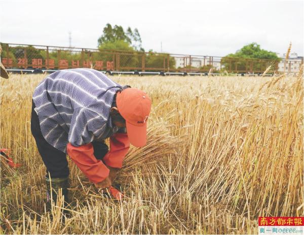 麦沃荡金波,田畴织锦绣。近日,与别处繁忙的春耕不同,博罗县石坝镇三嘉村呈现出一派丰收景象,印象里三嘉村“接天莲叶无穷碧,映日荷花别样红”的美丽画卷已经被一片片金灿灿随风摇曳的麦穗所“取代”,曾经浪漫的百亩荷花园,如今焕发出不一样的新活力。