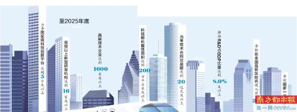 至2025年底,力争国家级科技创新平台达到5个及以上,省级以上新型研发机构达到16家及以上,高新技术企业达到1600家及以上,科技孵化载体面积达到200万平方米及以上,当年技术合同交易额达到20亿元及以上,推动R&D占GDP比重达到8.0%及以上,争取在全国高新区排名进入前30名,争创国家一流高新区。