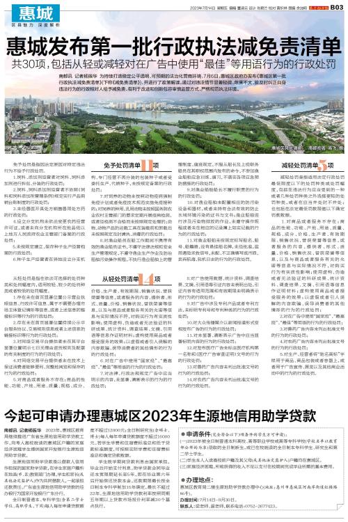 南都讯 记者杨振华 为持续打造稳定公平透明、可预期的法治化营商环境,7月6日,惠城区政府办发布《惠城区第一批行政执法减免责清单》(下称《减免责清单》),并进行了政策解读。通过对违法情节显著轻微、危