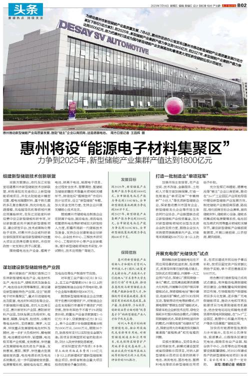 为推动惠州市新型储能产业高质量发展,7月4日,惠州市政府办公室发布《惠州市推动新型储能产业高质量发展行动方案》(下称《行动方案》),到2025年,新型储能产业集群产值力争达到1800亿元,到202