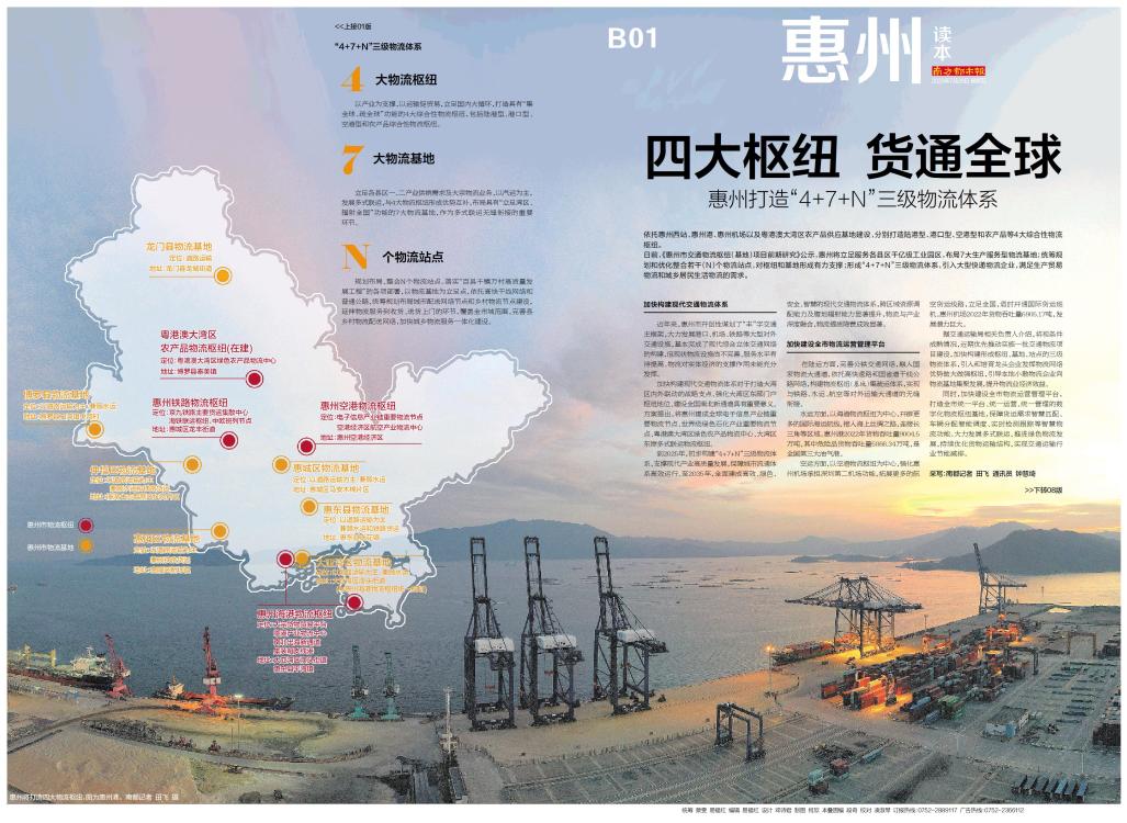 依托惠州西站、惠州港、惠州机场以及粤港澳大湾区农产品供应基地建设,分别打造陆港型、港口型、空港型和农产品等4大综合性物流枢纽。 日前,《惠州市交通物流枢纽(基地)项目前期研究》公示,惠州将立足服