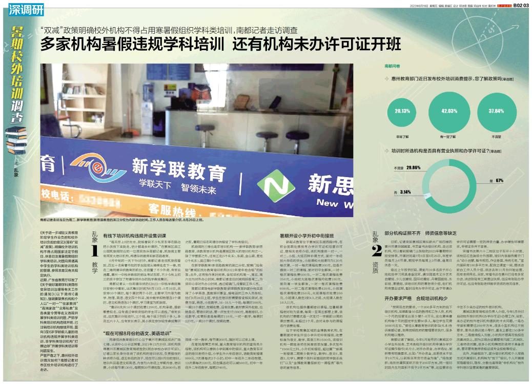 多家机构暑假违规学科培训 还有机构未办许可证开班