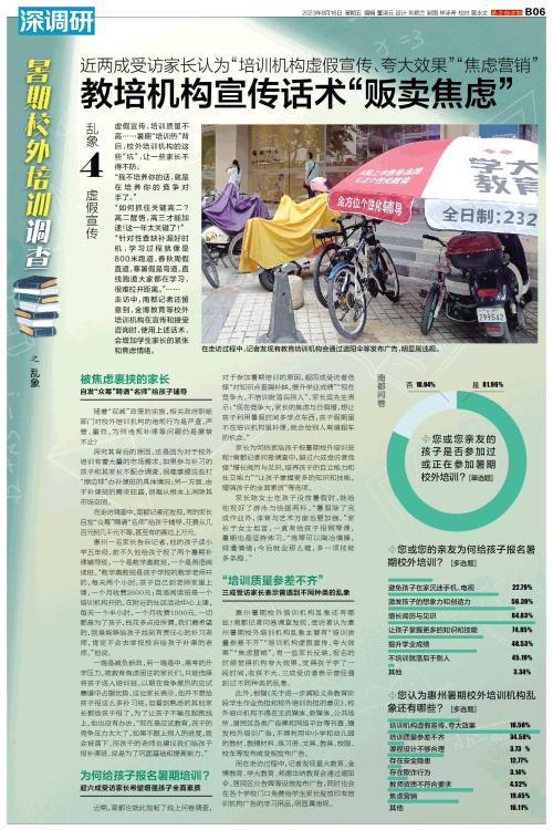 乱象 4 虚假宣传 虚假宣传、培训质量不高……暑期“培训热”背后,校外培训机构的这些“坑”,让一些家长不得不防。 “我不培养你的话,就是在培养你的竞争对手了。” “如何抓住关键高二?高二