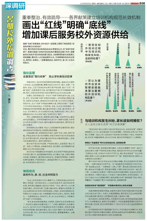 建议 随着“双减”政策落地,校外培训一定程度上得到了有效规范,但是如何建立长效机制? 对此,惠州市校外培训机构协会会长李敏剑认为,在“双减”的背景下,教育行政部门对校外培训机构开展规范治理工作