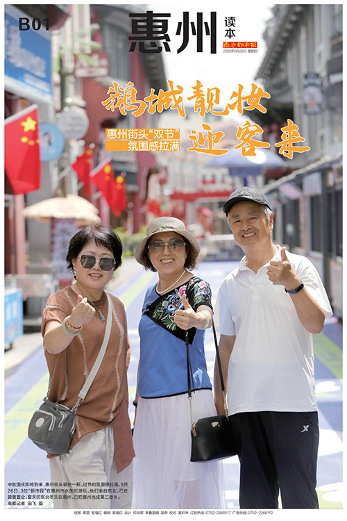中秋国庆即将到来,惠州街头装扮一新,过节的氛围感拉满。9月26日,3位“新市民”在惠州市水东街游玩。他们来自东北,已在巽寮置业,夏天回东北冬天在惠州,已把惠州当成第二故乡。 南都记者 田飞 摄