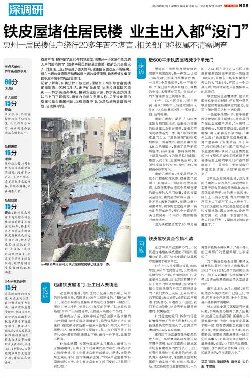 权属不清,却存在了近30年的铁皮屋,把惠州一小区三个单元的入户门都挡死了,30多户居民只能通过绕道4楼的公共走廊出入,对生活、出行都造成了重大影响。业主投诉也迟迟不能解决。桥东市场监督管理所和惠城