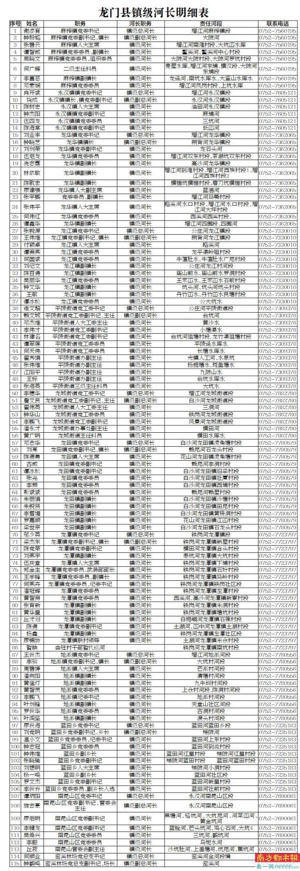 关于惠州市龙门县县、镇、村3级河长名单的公告