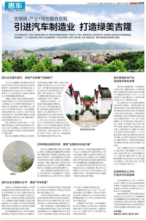 2023年是实施“十四五”规划的关键之年,惠东县吉隆镇牢固树立“项目为王”理念,聚焦抓项目、抓招商引资、抓营商环境实现经济发展再提速;持续推进一二三产融合发展,实现产业发展再提升;守好生态底色、改