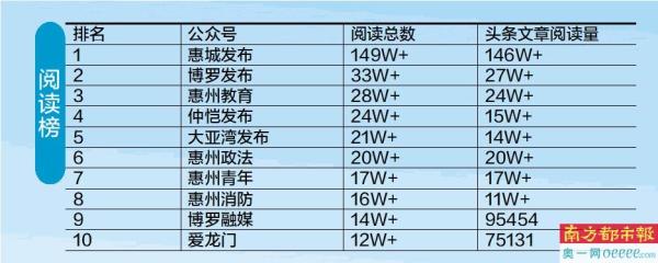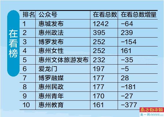 12月14日,南方都市报发布《惠州政务公众号影响力排行榜》(第八期),对“惠城发布”“惠州教育”等45个惠州市直部门、各县区融媒体中心的政务公众号影响力进行客观评测、排名。