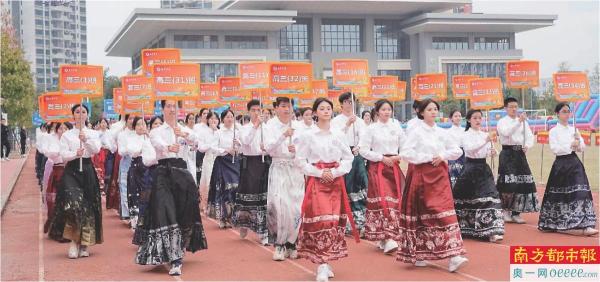教师方阵的教师们用一抹靓丽的东方红染出鲜艳的教育之花,舞动师者的传道之阳。他们用辛勒换来桃李芬芳,用智慧为社会培育人才。高三年级方阵的同学们身着优雅大气的马面裙,精神抖擞,英姿飒爽;高二年级方阵的同学们身着温婉细腻的宋代服饰,从容自信,落落大方;高一年级方阵的同学们身着东方韵味的唐代服饰,活力四射,团结进取。知行以并进、文质而兼长,展示了鸿鹄学子的独特风采。