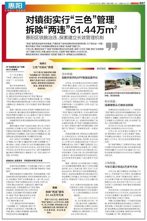 对镇街实行“三色”管理 拆除“两违”61.44万㎡