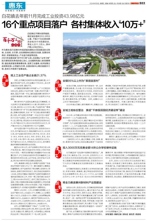 白花镇位于惠东县西南部,镇区域总面积203.6平方公里,下辖2个社区居民委员会和26个村民委员会,常住人口11.3万人,其中户籍人口82256人。 作为惠东县乃至惠州市高质量发展和大项目建设的主