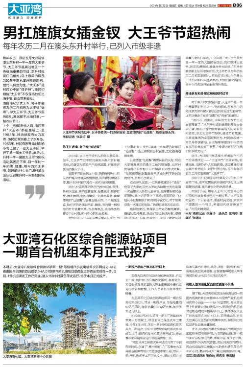 每年农历二月初五是大亚湾区澳头东升村一年一度的大王爷节。大王爷节是潮汕地区一个传统而重要的节日,东升村祖辈口口相传,岛上最早的居民200多年前从潮州南迁而来,世代以捕鱼为生。“大王爷”是村民心中的