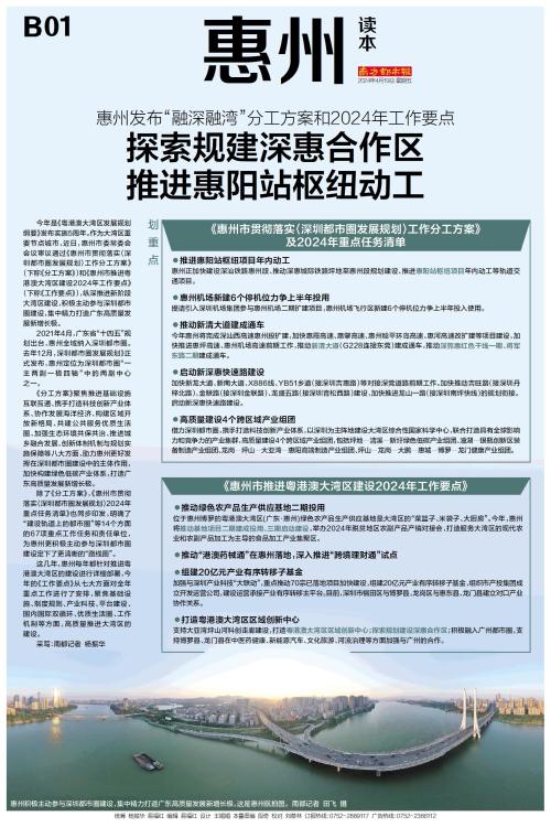 今年是《粤港澳大湾区发展规划纲要》发布实施5周年。作为大湾区重要节点城市,近日,惠州市委常委会会议审议通过《惠州市贯彻落实〈深圳都市圈发展规划〉工作分工方案》(下称《分工方案》)和《惠州市推进粤港