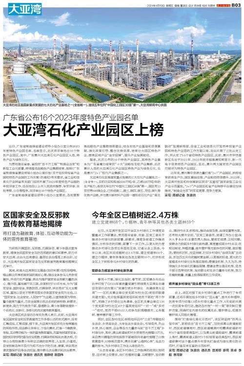 近日,广东省制造强省建设领导小组办公室公布2023年度特色产业园名单。名单显示,此次共评审选出16个特色产业园区,其中,广东惠州大亚湾石化产业园区入选,特色产业为绿色石化。 为贯彻落实省委、省政