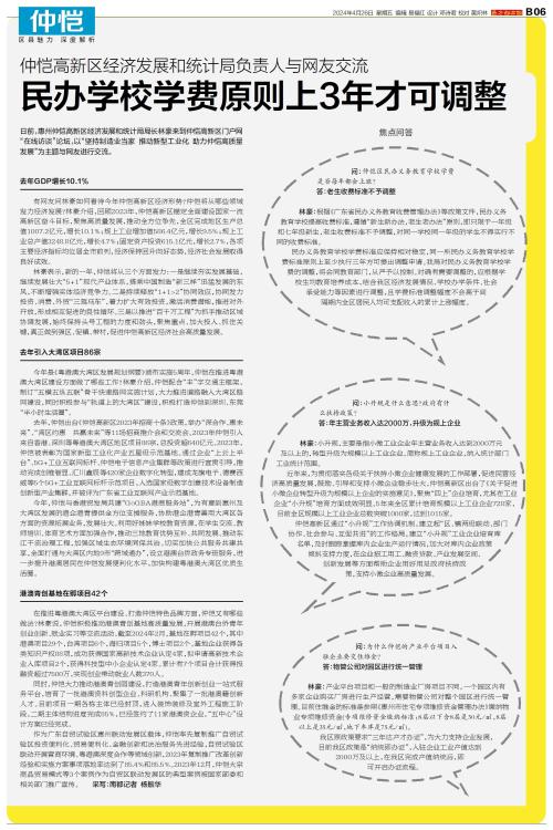 日前,惠州仲恺高新区经济发展和统计局局长林豪来到仲恺高新区门户网“在线访谈”论坛,以“坚持制造业当家 推动新型工业化 助力仲恺高质量发展”为主题与网友进行交流。 去年GDP增长10.1%