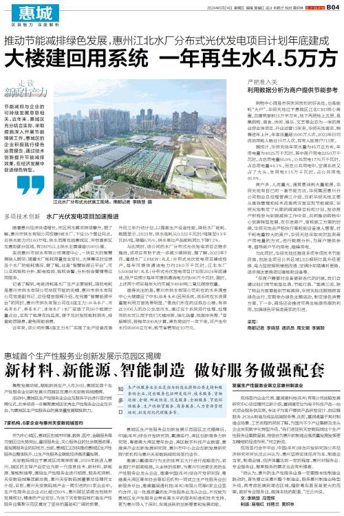 走读新质生产力 节能减排与企业的可持续发展息息相关。近年来,惠城区充分结合实际,采取措施深入开展节能降碳工作。惠城区的企业积极践行绿色运营理念,通过技术创新提升节能减排效果,在经济发展中促进绿色