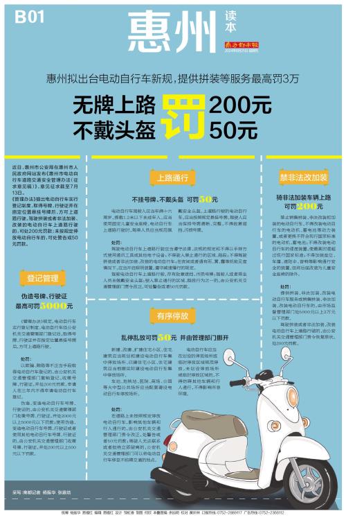 近日,惠州市公安局在惠州市人民政府网站发布《惠州市电动自行车道路交通安全管理办法(征求意见稿)》,意见征求截至7月13日。 《管理办法》提出电动自行车实行登记制度,取得号牌、行驶证并在指定位置悬