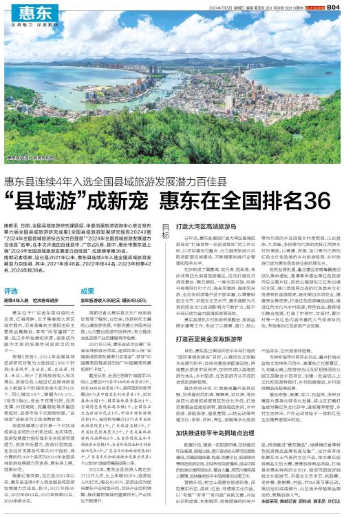 南都讯 日前,全国县域旅游研究课题组、华夏佰强旅游咨询中心联合发布第六届全国县域旅游研究成果《全国县域旅游发展研究报告2024》暨“2024年全国县域旅游综合实力百强县”“2024年全国县域旅游发