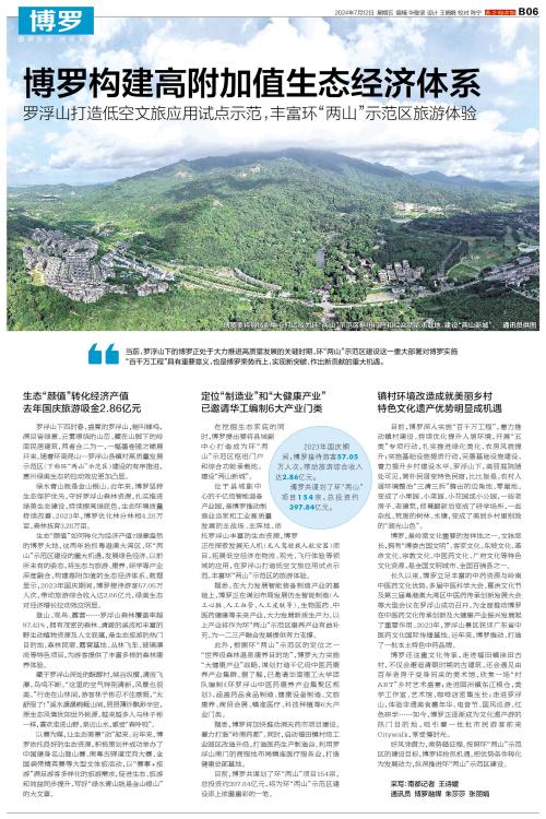 当前,罗浮山下的博罗正处于大力推进高质量发展的关键时期,环“两山”示范区建设这一重大部署对博罗实施“百千万工程”具有重要意义,也是博罗乘势而上,实现新突破、作出新贡献的重大机遇。 2023年