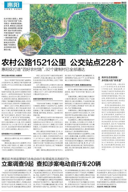 在乡村振兴道路上,惠阳区以“四好农村路”为笔,勾勒出一幅幅美丽画卷。近年来,惠阳区以高品质建设、高效能管理、高质量养护、高水平运营为准则,不断巩固提升“四好农村路”建设成果,让一条条宽敞平坦的农村