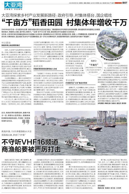近日,南海伏季休渔期结束。随着开渔令一发,停靠在大亚湾澳头、霞涌渔港的渔船陆续扬帆起航,开启新一轮耕海牧渔作业生活。 南都记者现场了解到,惠州海事局、惠州市海洋综合执法支队、惠州海警局在大亚湾海