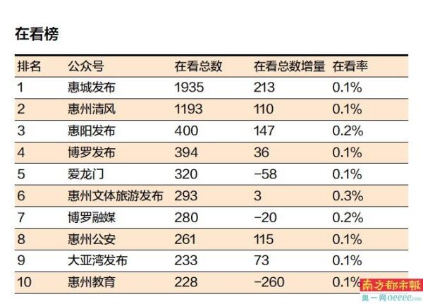 11月1日,南方都市报发布《惠州政务公众号影响力排行榜》(第19期),对今年9月份的“惠城发布”“惠州教育”等43个惠州市直部门、县区融媒体中心的政务公众号影响力进行客观评测、排名。
