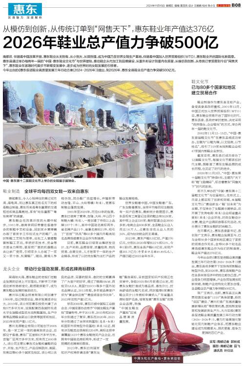 南都讯 伴随着中国改革开放,惠东鞋业从无到有,从小到大,从弱到强,成为中国乃至世界女鞋生产基地。伴随着中国加入世界贸易组织(WTO),惠东鞋业开启国际化新篇章。 惠东县通过举办每两年一届的“中国