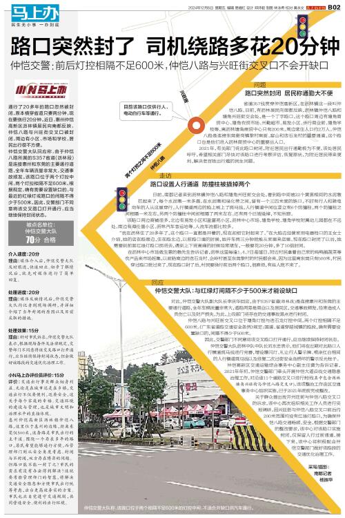 仲恺交警大队称,该路口位于两个相隔不足600米的灯控中间,不适合开缺口供汽车通行。 通行了20多年的路口忽然被封闭,原本横穿省道只要两分钟,现在要绕行20分钟。近日