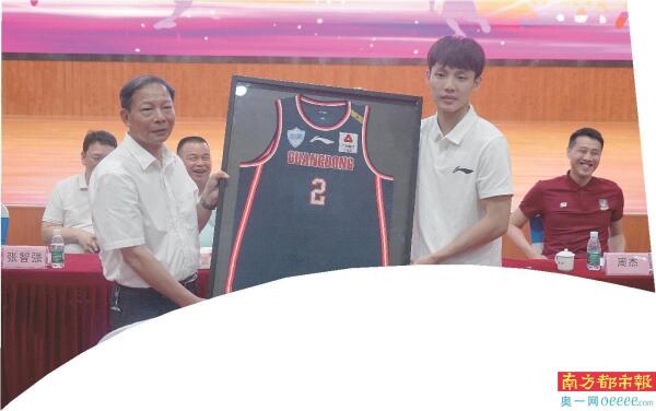 广东男篮球星徐杰将广东宏远“2号”签名球衣赠予博东实验学校。