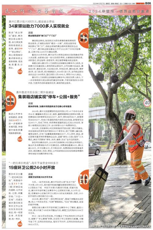 停车设施 目标 推进公共停车设施建设,新增泊位2.9万个,进一步缓解停车难问题,持续提升服务质量和服务便利度。 进展 解决停车难,为惠州市民提供全方位暖心停车服务 2024年,惠州交