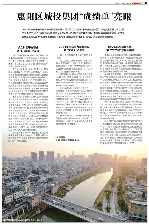 2024年,惠州市惠阳区城市建设投资集团有限公司(以下简称“惠阳区城投集团”)以高质量发展为核心,紧密围绕“三生融合”战略规划,持续加大投资力度,稳步推进项目建设进程,不断优化运营调度体系,全方位
