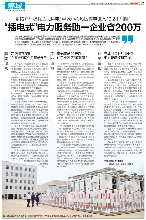 稳定的电力供应是企业正常生产的保障。2024年来,随着惠州市惠城区经济发展提速加档及电力基础建设逐步完善,惠城区电力供应能力和供电量不断攀升,2024年7月突破历史最高负荷,达194.669万千瓦