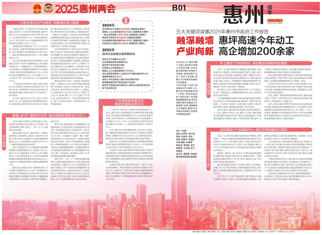 2月19日上午,惠州市第十三届人民代表大会第六次会议开幕。代市长陈宇航作惠州市政府工作报告。报告回顾了过去一年的工作成果,明确2025年惠州发展的方向与路径。 2025