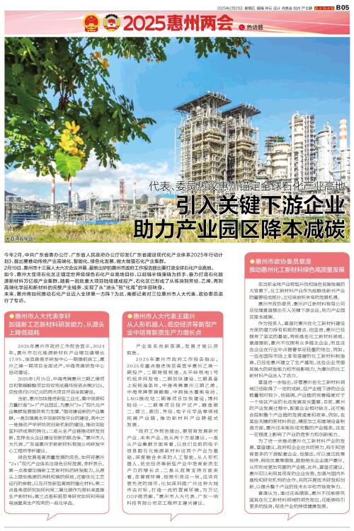 2025惠州两会之热话题 今年2月,中共广东省委办公厅、广东省人民政府办公厅印发《广东省建设现代化产业体系2025年行动计划》,提出要推动传统产业高端化、智能化、绿色化发展,做大做强石化产业集群