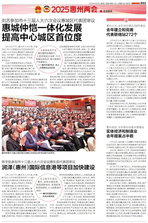 2025惠州两会之报告解读 ●坚持走好产业集约集群发展路子。 ●坚持制造业当家,大力发展实体经济,做大做强生产性服务业。 ——惠州市委书记、市人大常委会主任刘吉 2月19日下午,惠州市人大