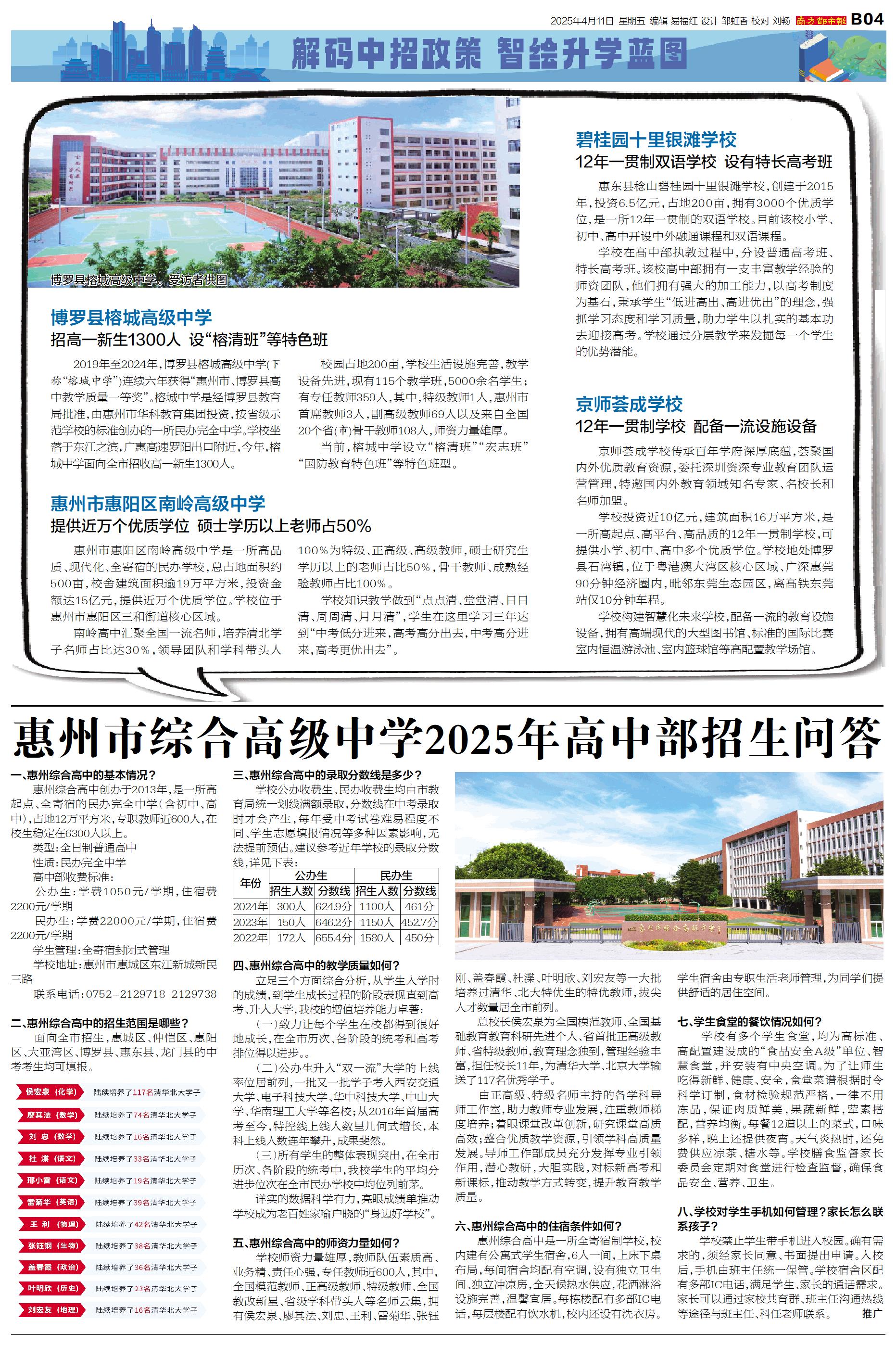 惠州综合高中创办于2013年,是一所高起点、全寄宿的民办完全中学(含初中、高中),占地12万平方米,专职教师近600人,在校生稳定在6300人以上。