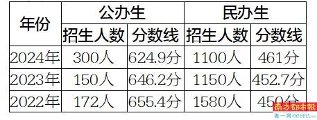 学校公办收费生、民办收费生均由市教育局统一划线满额录取,分数线在中考录取时才会产生,每年受中考试卷难易程度不同、学生志愿填报情况等多种因素影响,无法提前预估。建议参考近年学校的录取分数线,详见下表: