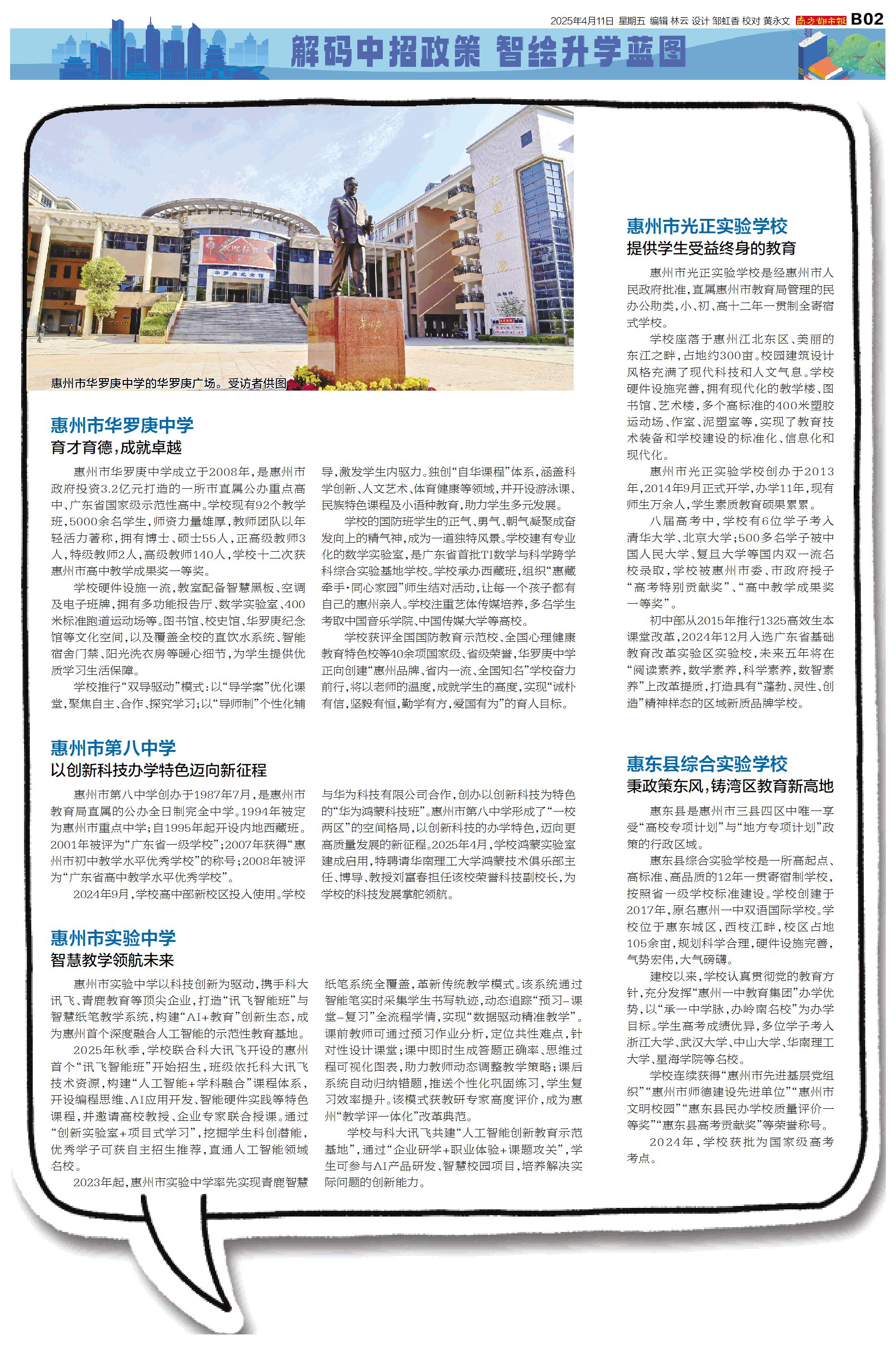 惠州市实验中学以科技创新为驱动,携手科大讯飞、青鹿教育等顶尖企业,打造“讯飞智能班”与智慧纸笔教学系统,构建“AI+教育”创新生态,成为惠州首个深度融合人工智能的示范性教育基地。 2025年秋季